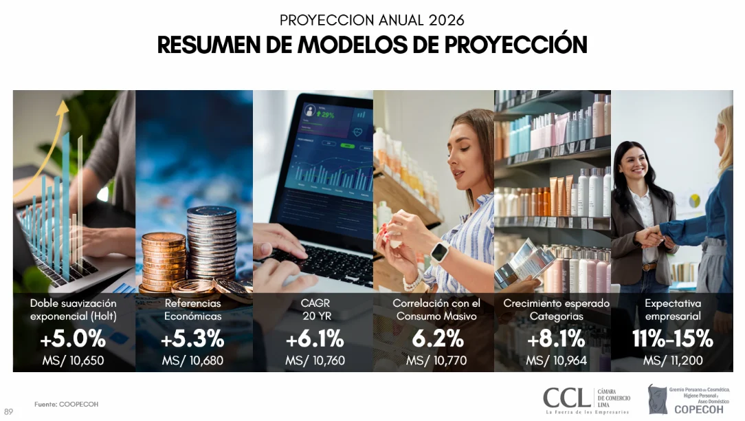 Para 2026, se proyecta que el mercado nacional registre un crecimiento cercano al 7 %, de acuerdo con el escenario estándar. De cumplirse esta proyección, el sector alcanzaría un valor estimado de S/10 850 millones, consolidando una expansión sostenida del mercado registrada en las dos últimas décadas. Ello impulsado por la innovación constante, la expansión del consumo en regiones y el ingreso de nuevas empresas al sector.